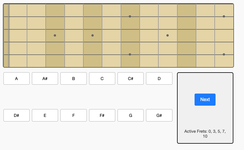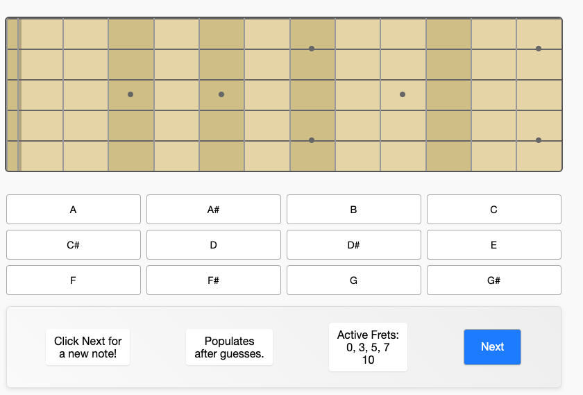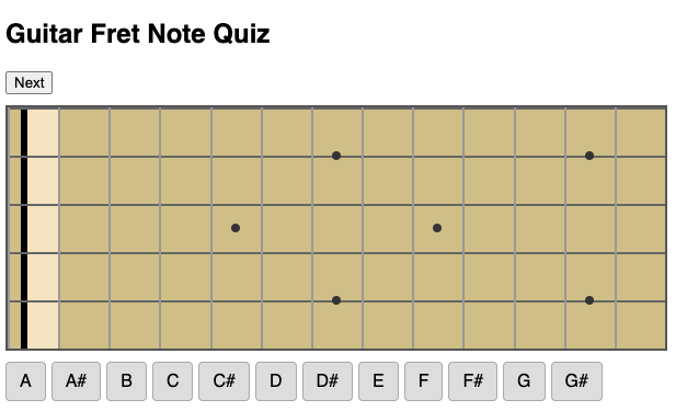 Last week I spent a couple hours building myself a guitar tool. I map the guitar to a UI component and quiz myself on how to find the notes. It seems simple, and is, but I use a bunch of math tricks and connections to make it easier.